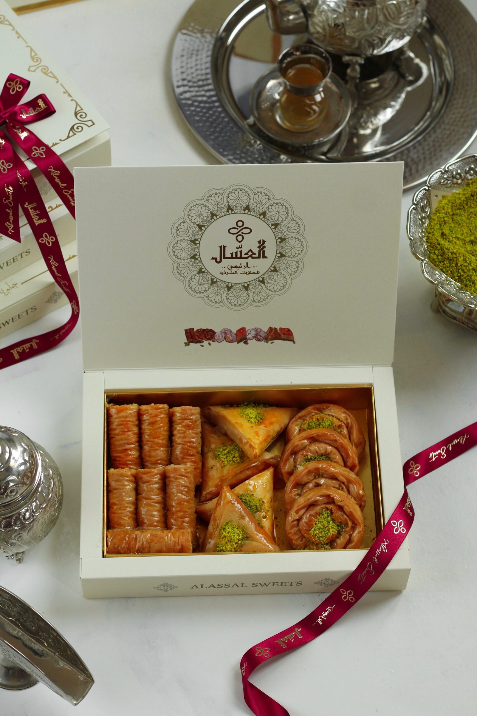 بوكس فاخر مكون من 16 قطعة منتقاة بعناية من أجود أنواع بقلاوة الوز الفاخر. كل قطعة مصنوعة من رقائق هشة محمّصة بإتقان، ومحشية باللوز الطازج بنكهات متنوعة، توازن بين القرمشة والنكهة الغنية .